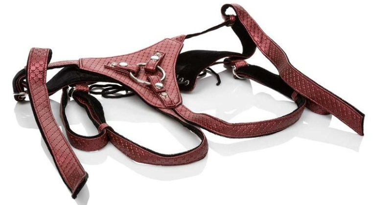 Les harnais conçus pour les godemichés de grande taille nécessitent un soutien et des fixations supplémentaires pour un maintien optimal – Crédit : affordableleather.co.uk