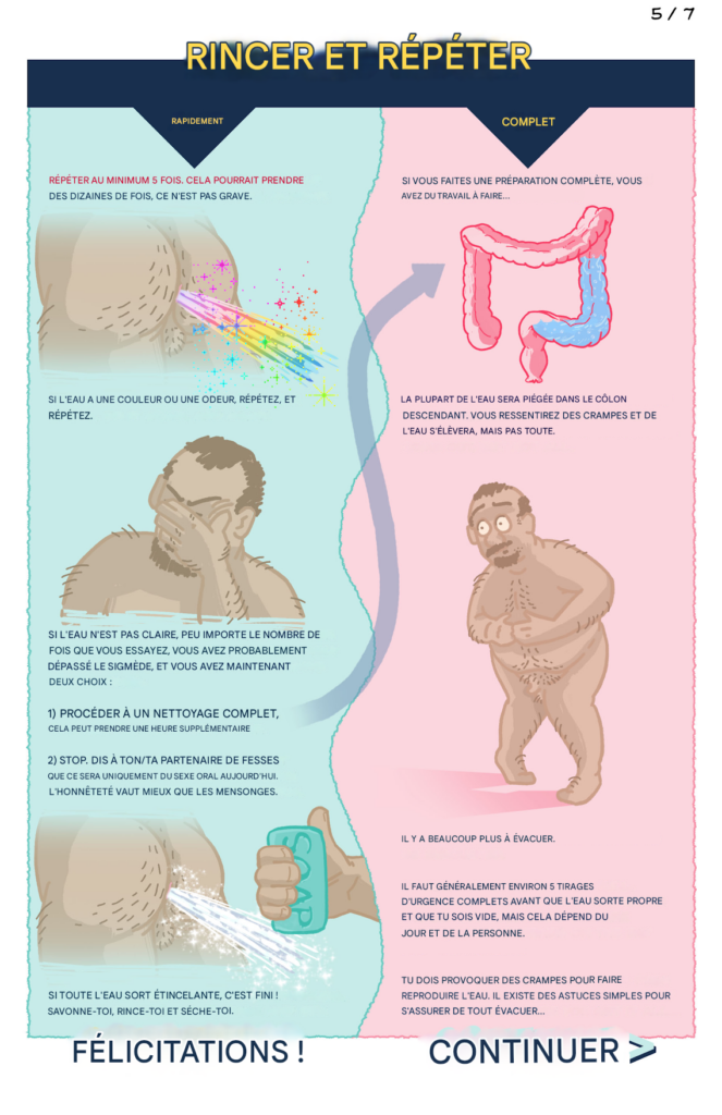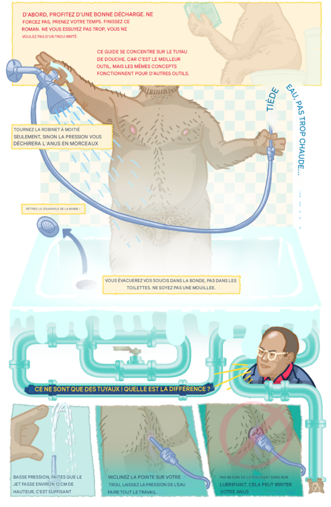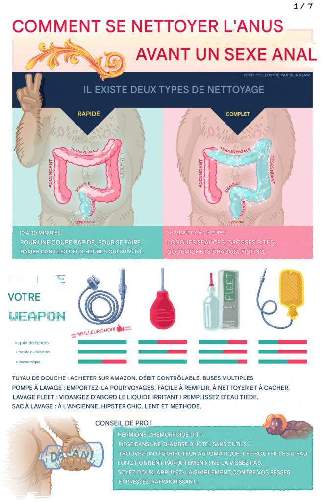 J’ALLAIS écrire un article sur comment préparer ses fesses pour le sexe anal, mais « BlindJaw » (twitter.com/blindjaw) m’a devancé ! Ces images sont à la fois si légères et informatives, je voulais aider son travail à toucher plus de gens. Alors, sans plus tarder… infographies sur le lavage anal !