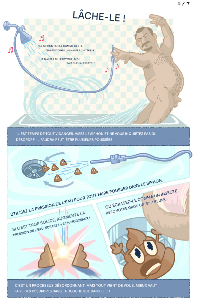 REMARQUE : Si le fait de « faire caca sous la douche » vous rebute, ne vous inquiétez pas, vous pouvez aussi le faire sur les toilettes 🙂