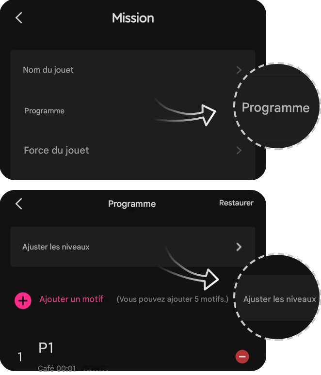 3. Sélectionnez « Ajuster les niveaux » pour modifier les trois premiers niveaux de puissance stables selon vos préférences.