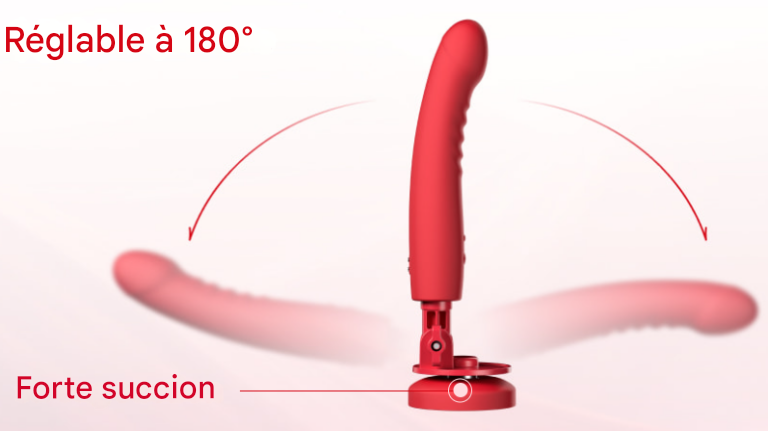 - Mains libres avec ventouse réglable : La base de la ventouse peut se régler jusqu’à 180°, ce qui permet de la fixer sur n’importe quelle surface lisse comme un sol, un mur ou un miroir. Cela vous permet de jouer en mains libres et d’essayer de nouveaux angles qui rendent votre show intéressant. La suction est puissante, vous pouvez donc vous concentrer sur votre performance sans craindre que le jouet glisse ou bouge.